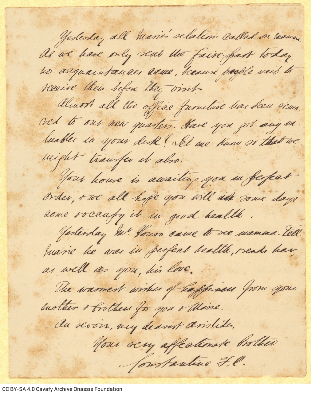 Letter by C. P. Cavafy to Aristeidis Cavafy