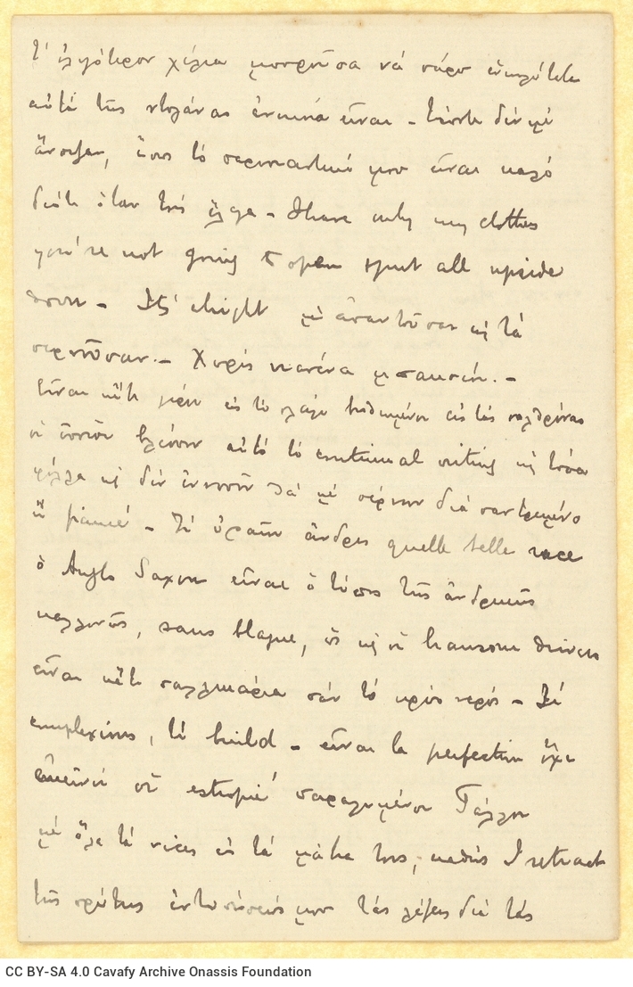 Επιστολή του Π. Καβάφη προς την οικογένειά του