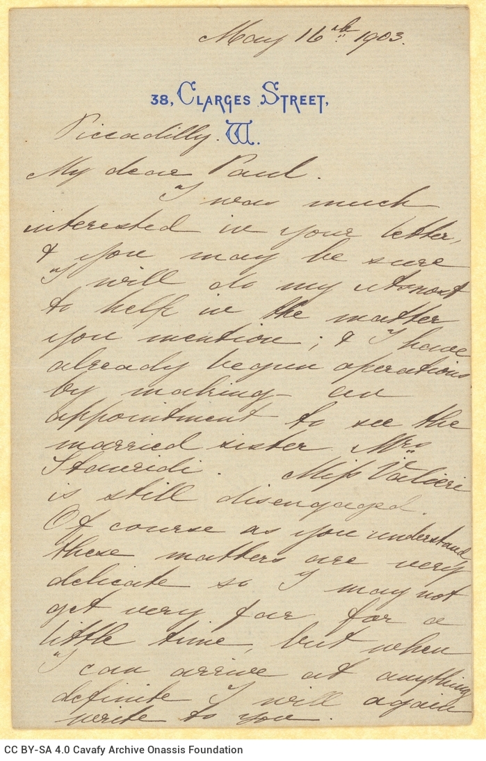 0028 (1168) - Letter by M. Cavafy to Paul Cavafy