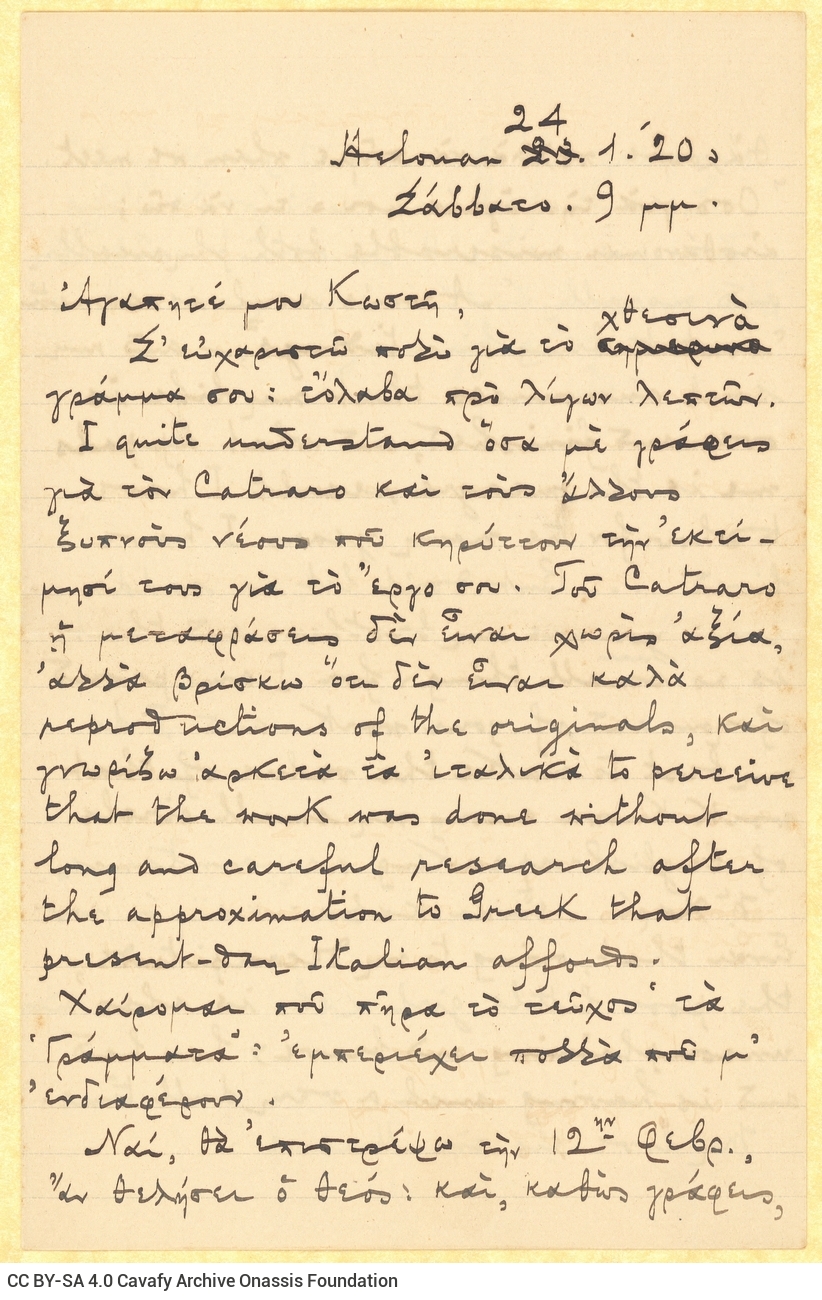 0072 (1183) - Letter by John Cavafy to C. P. Cavafy
