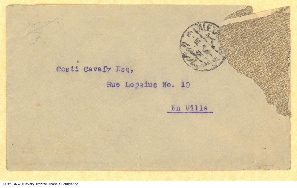 0077 (1188) - Letter by The Alexandria Engineering Works to Cavafy