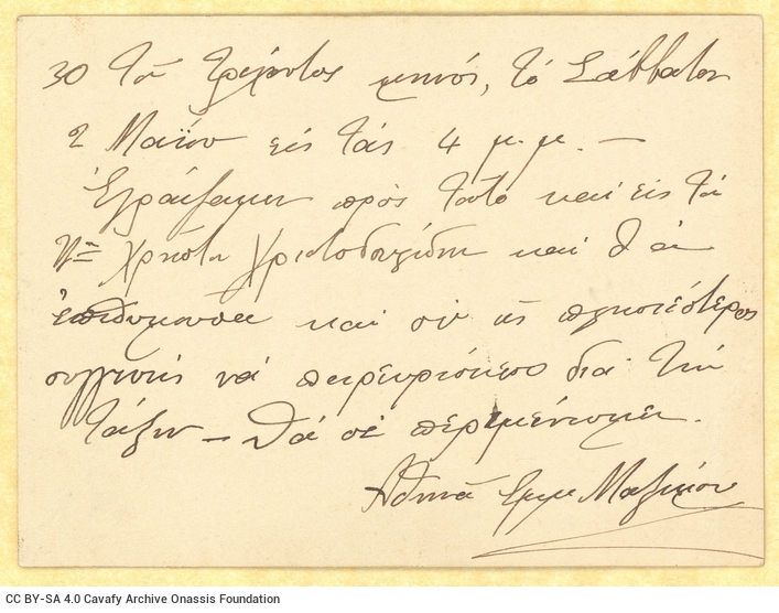0091 (1189) - Note by A. Emm. Maximou to Cavafy