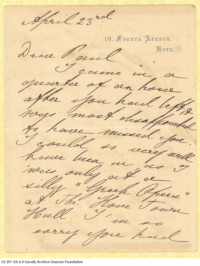 0037 (1190) - Letter by M. Cavafy to Paul Cavafy