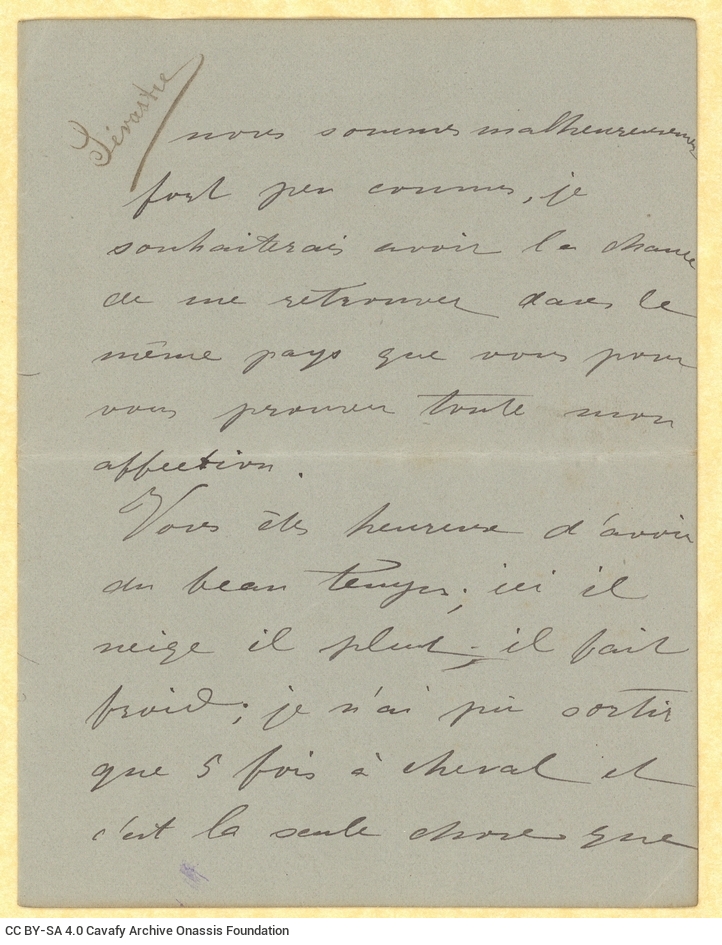 Letter by S. Verhaeghe de Naeyer to Paul Cavafy