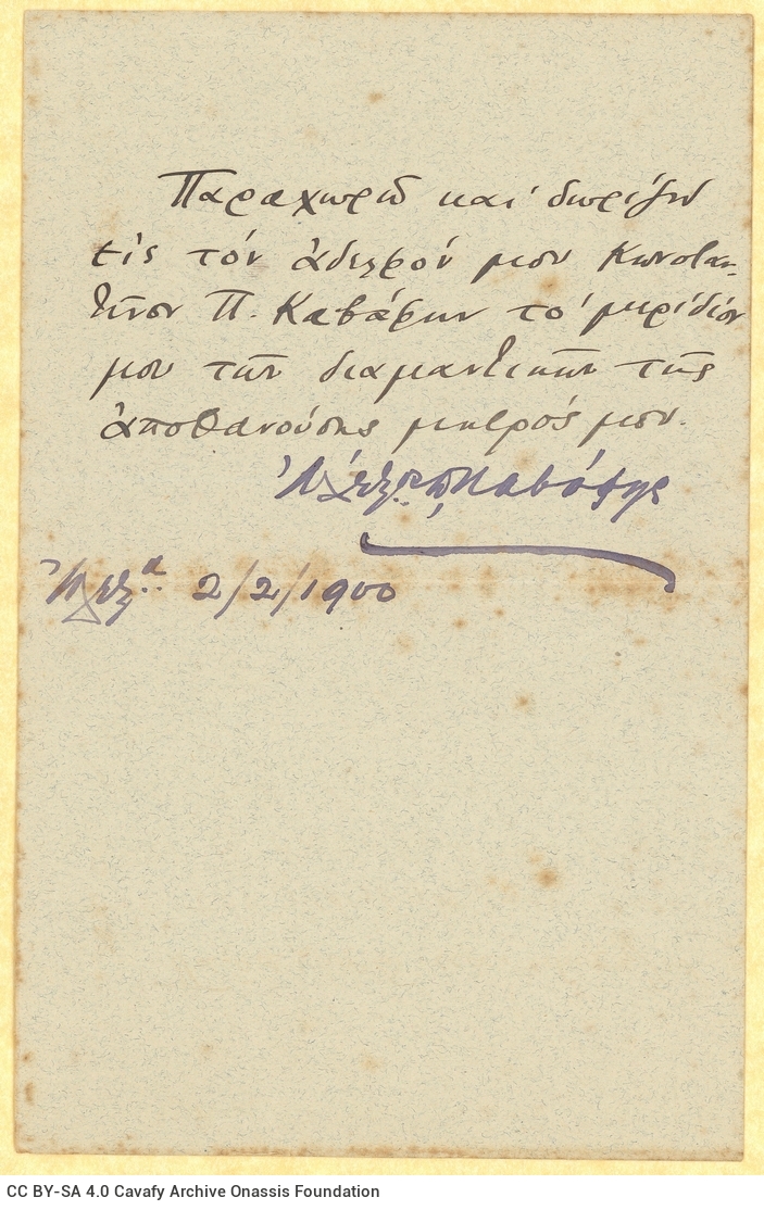 ΑΡΧΕΙΟ ΚΑΒΑΦΗ, Κ. Π.