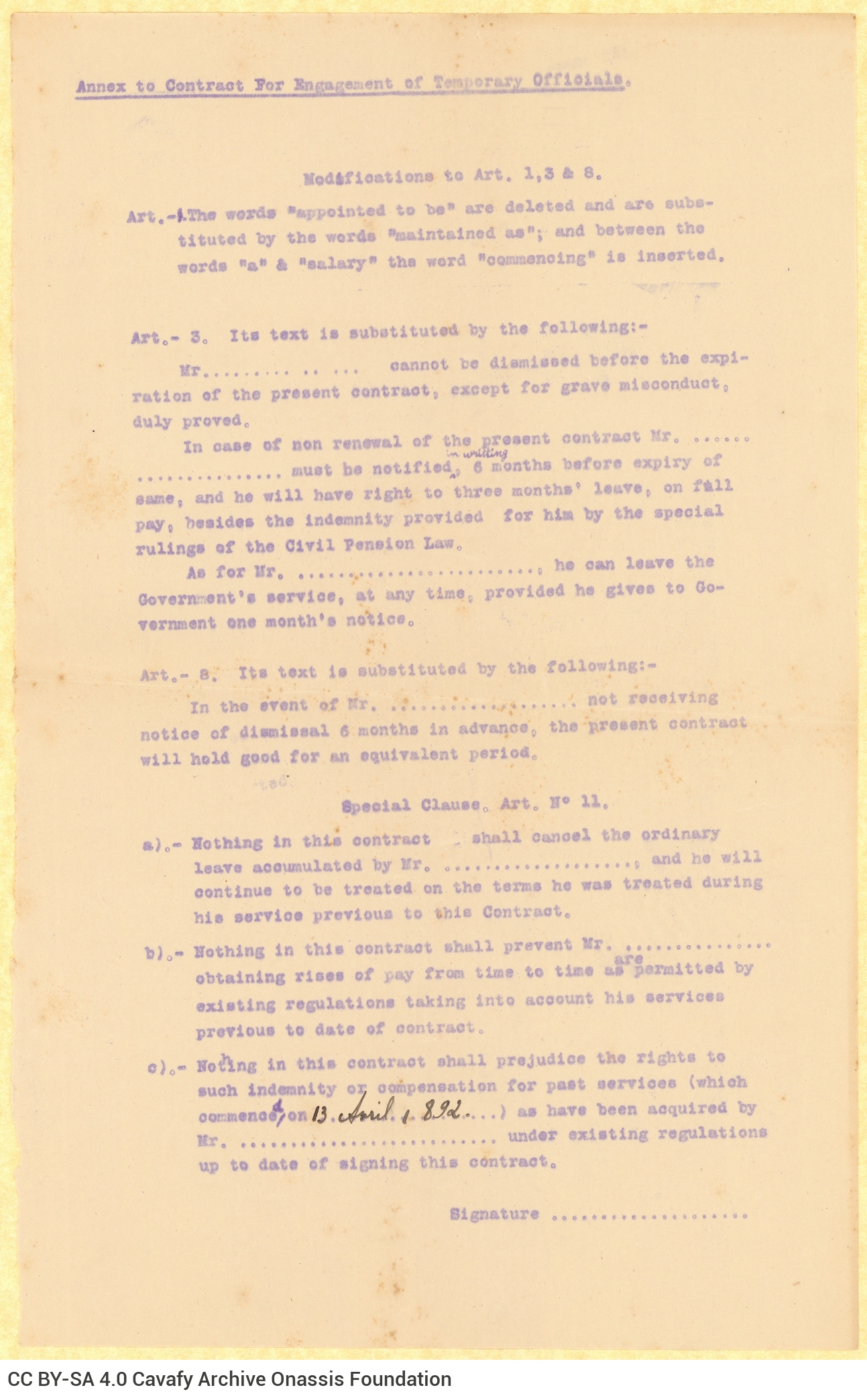 0010 (1201) - «Contract for Engagement of Temporary Officials»