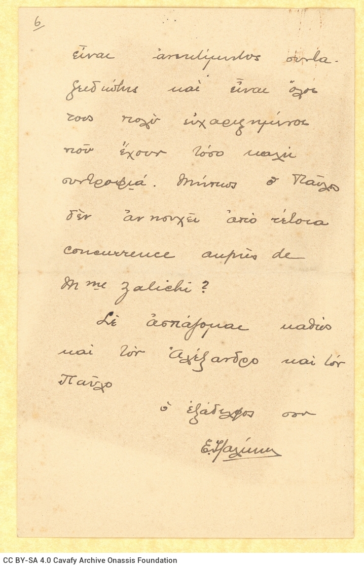 0020 (1218) - Letter by Emm. Zalichi to Cavafy