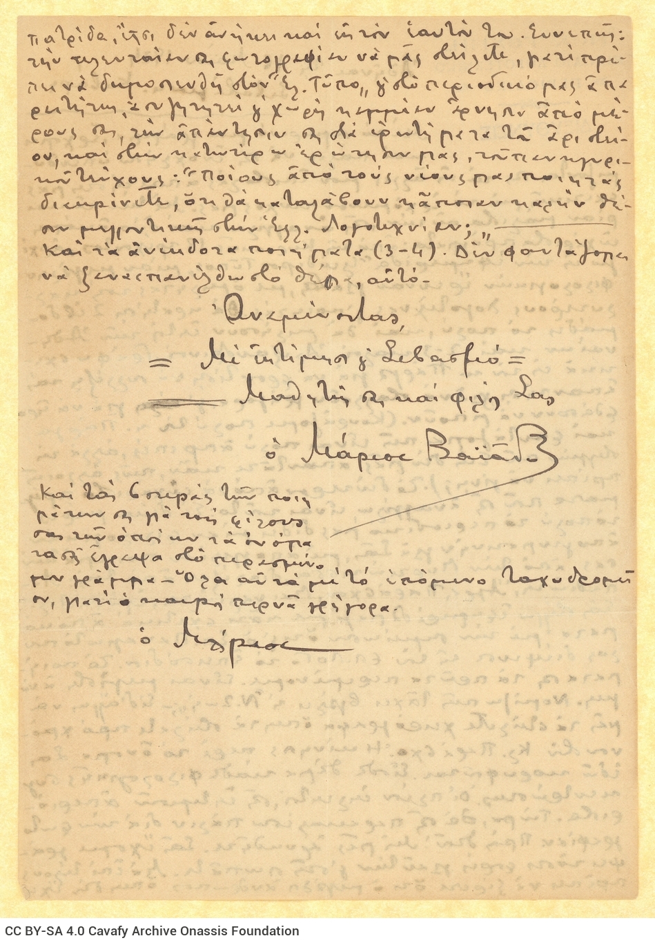 Επιστολή του Μ. Βαϊάνου προς τον Καβάφη