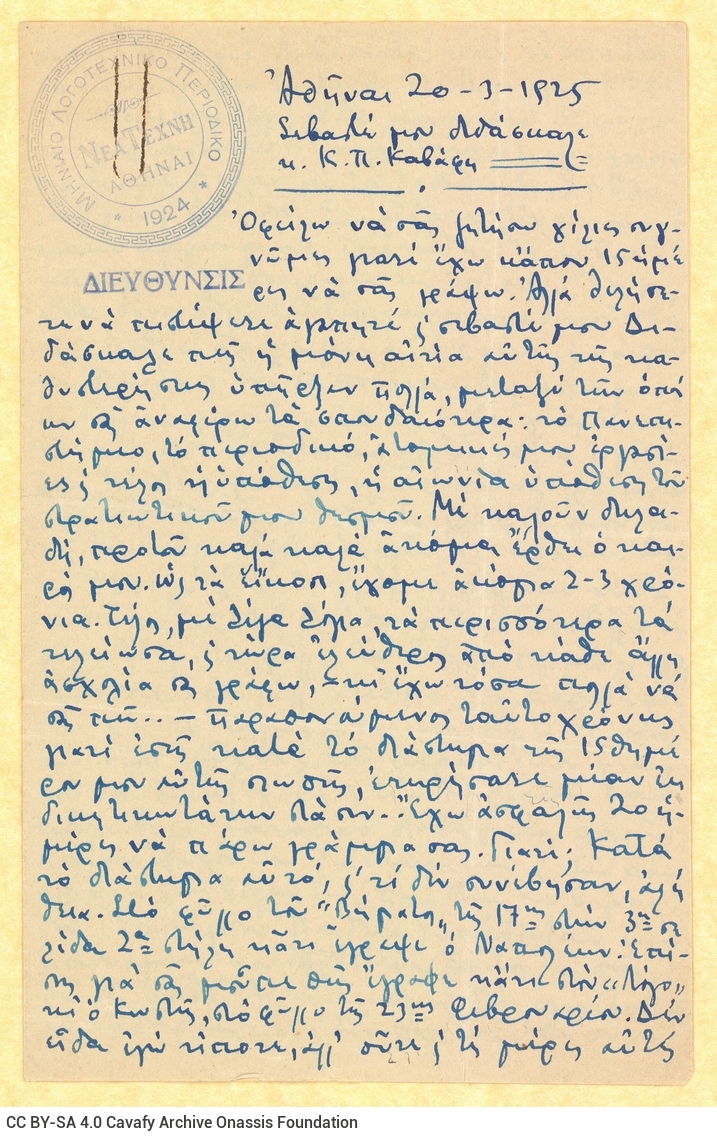 0089 (1225) - Letter by M. Vaianos to Cavafy