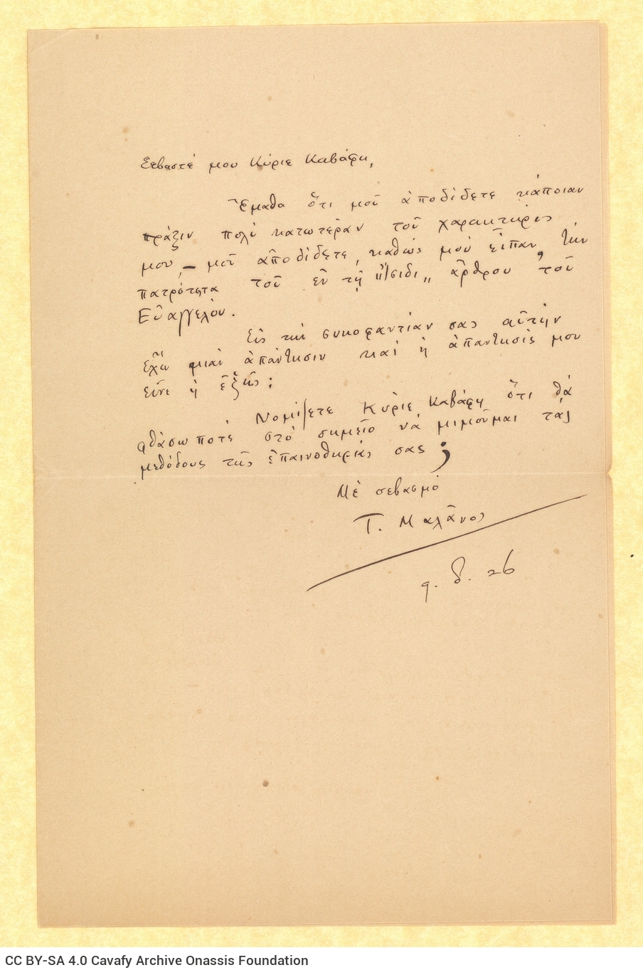 0101 (1228) - Letter by T. Malanos to Cavafy