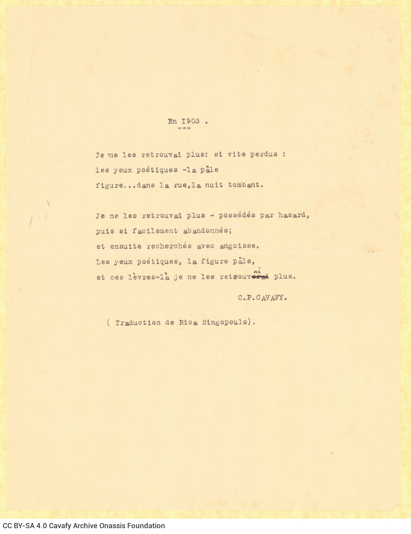 CA - CAVAFY, C. P. FONDS