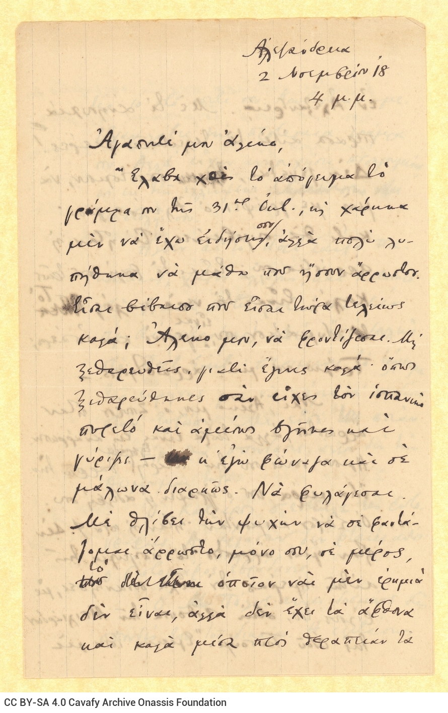 0013 (1414) - Letter by Cavafy to A. Singopoulo