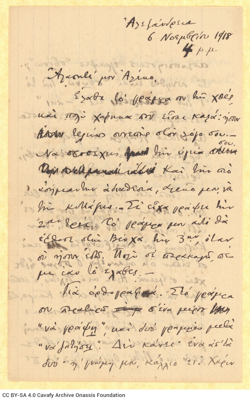 0014 (1415) - Letter by Cavafy to A. Singopoulo