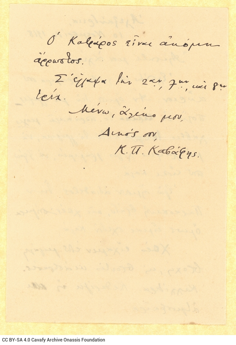 Εισερχόμενη αλληλογραφία από τον Καβάφη