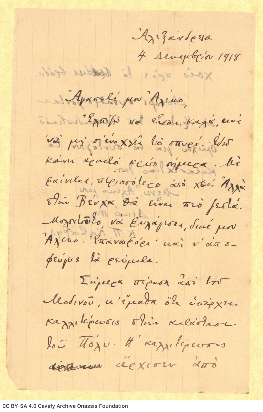 0024 (1425) - Letter by Cavafy to A. Singopoulo