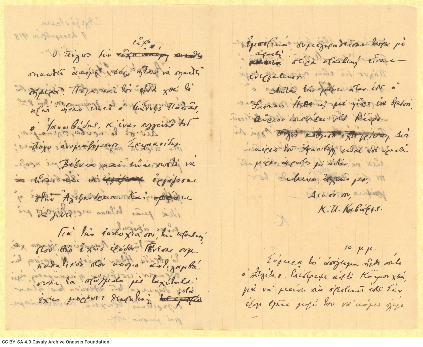 0026 (1427) - Letter by Cavafy to A. Singopoulo