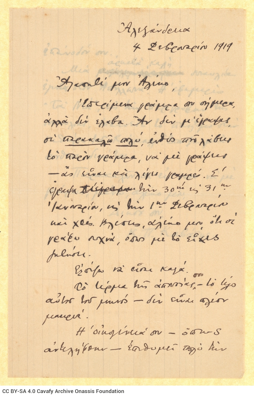 0052 (1453) - Letter by Cavafy to A. Singopoulo