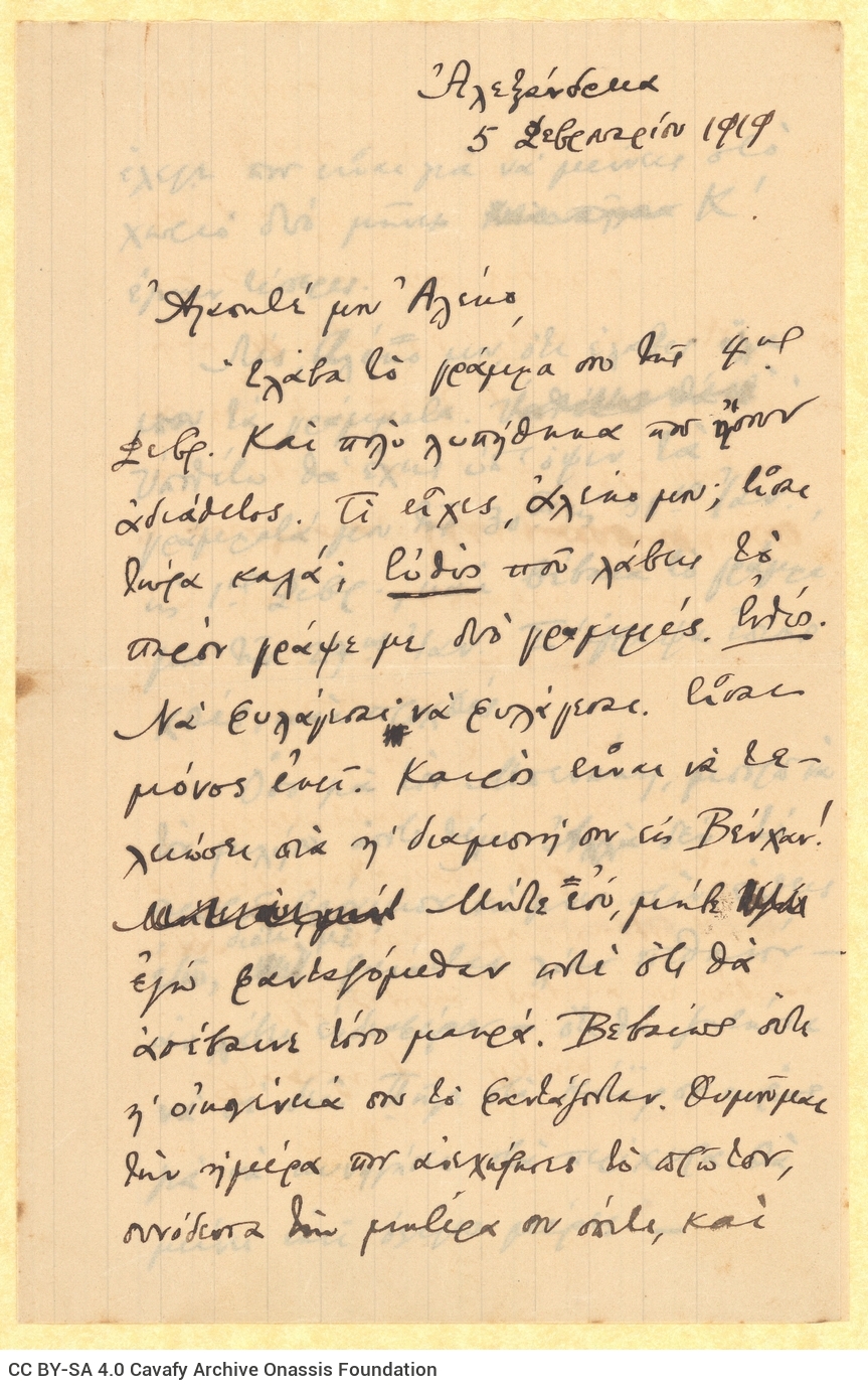 0053 (1454) - Letter by Cavafy to A. Singopoulo