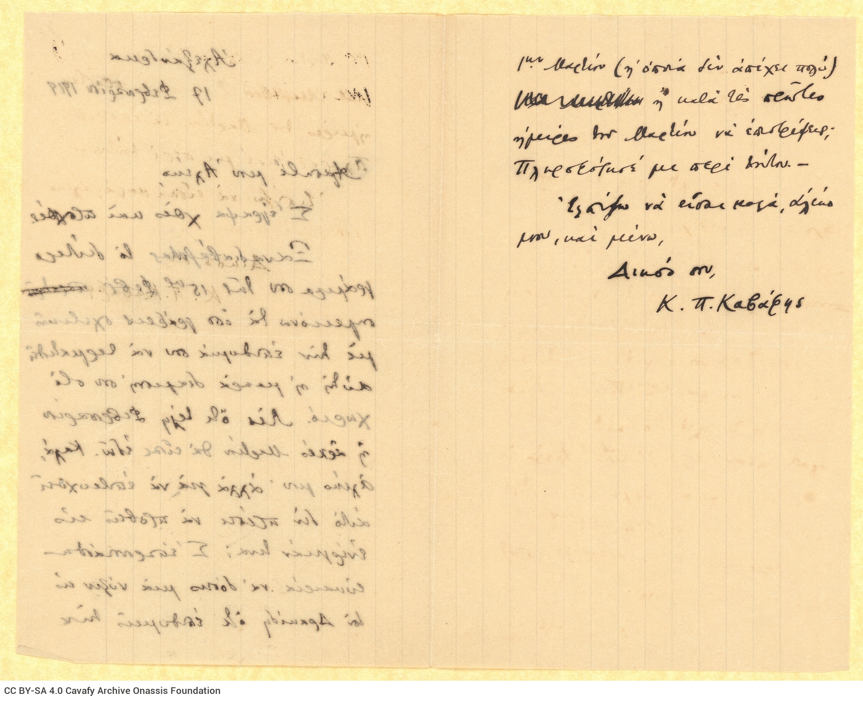 SF001 - Εισερχόμενη αλληλογραφία από τον Καβάφη
