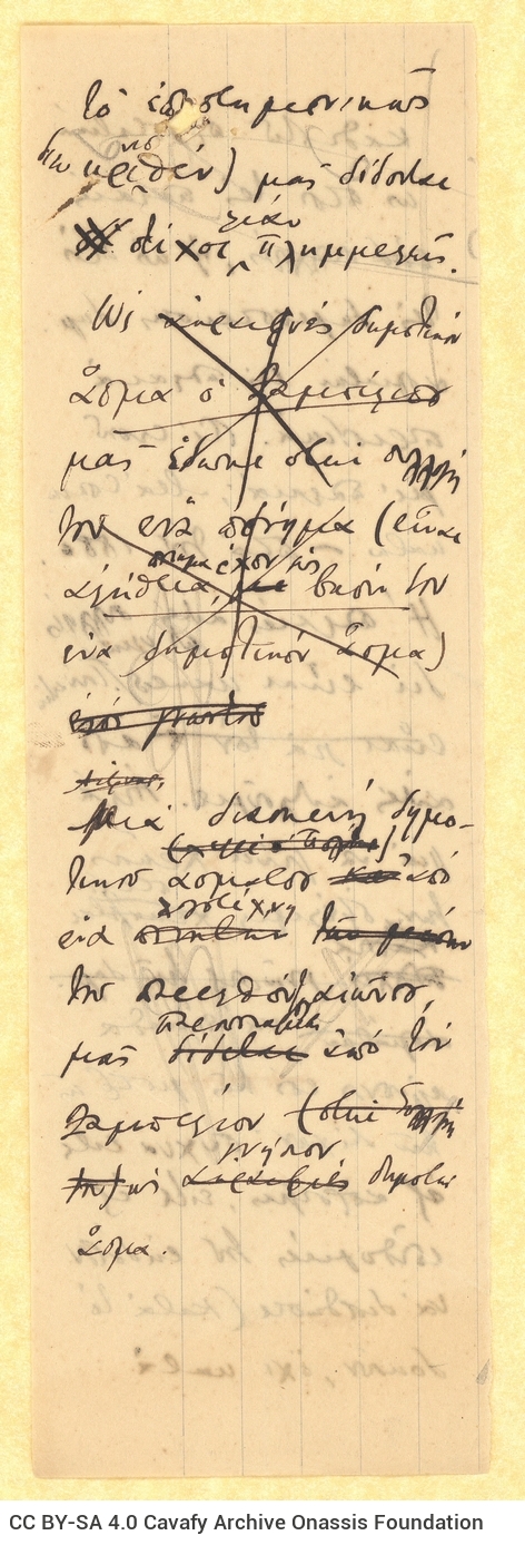 Σχέδιο επιστολής του Καβάφη προς τον Α. Σεγκόπουλο