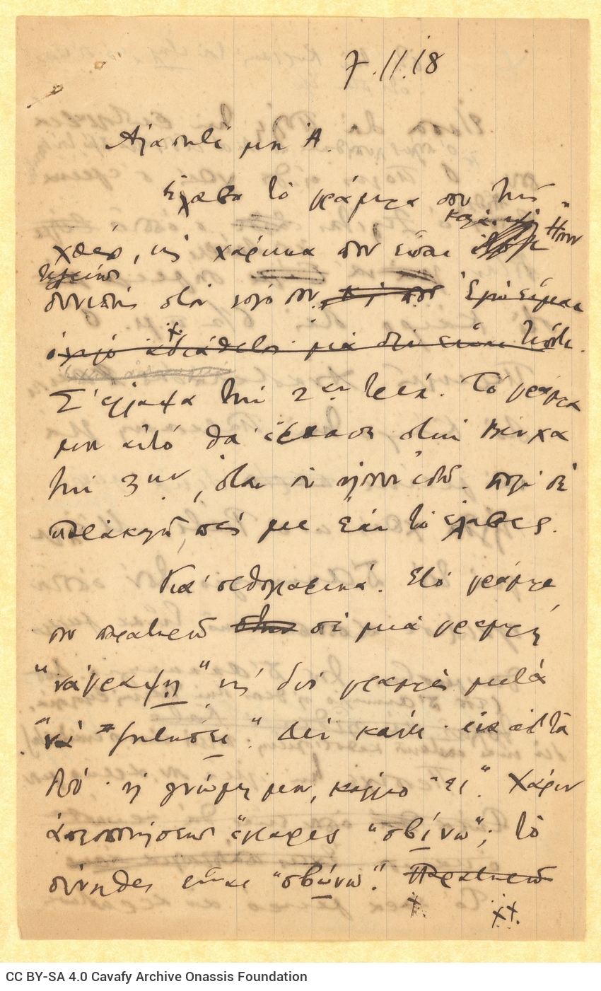 Σχέδιο επιστολής του Καβάφη προς τον Α. Σεγκόπουλο