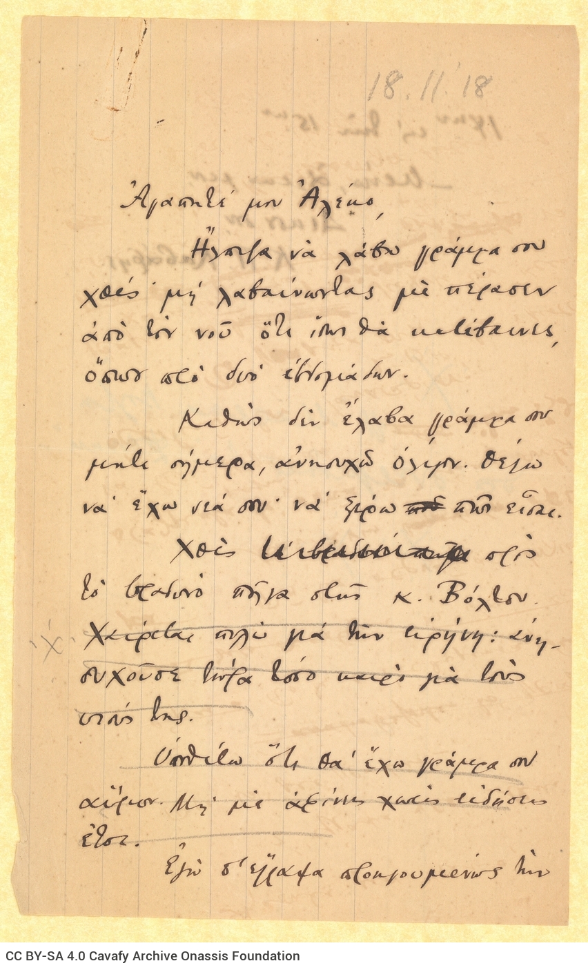 0019 (1491) - Draft letters by Cavafy to A. Singopoulo