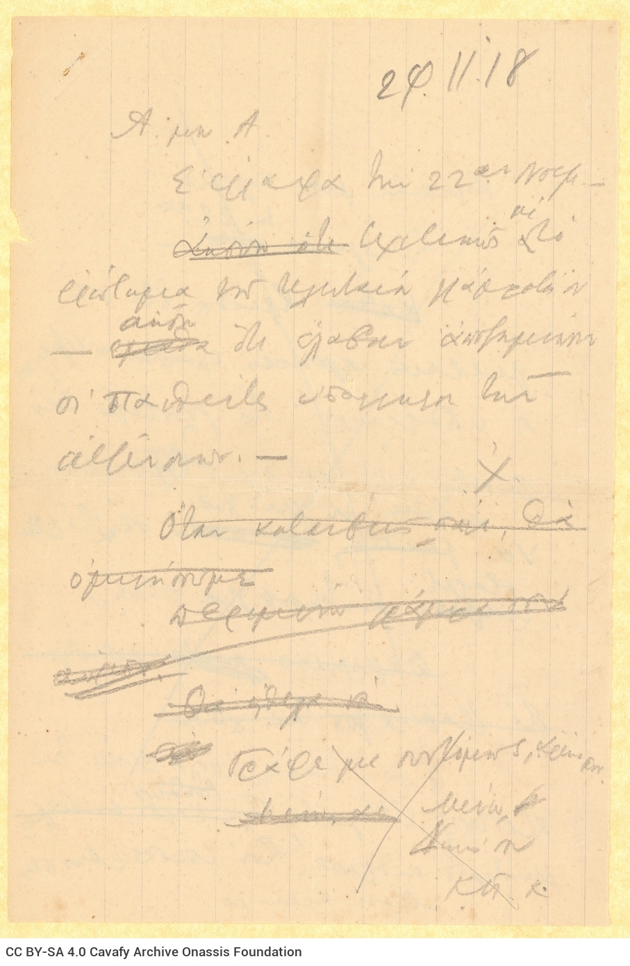 0022 (1494) - Draft letters by Cavafy to A. Singopoulo