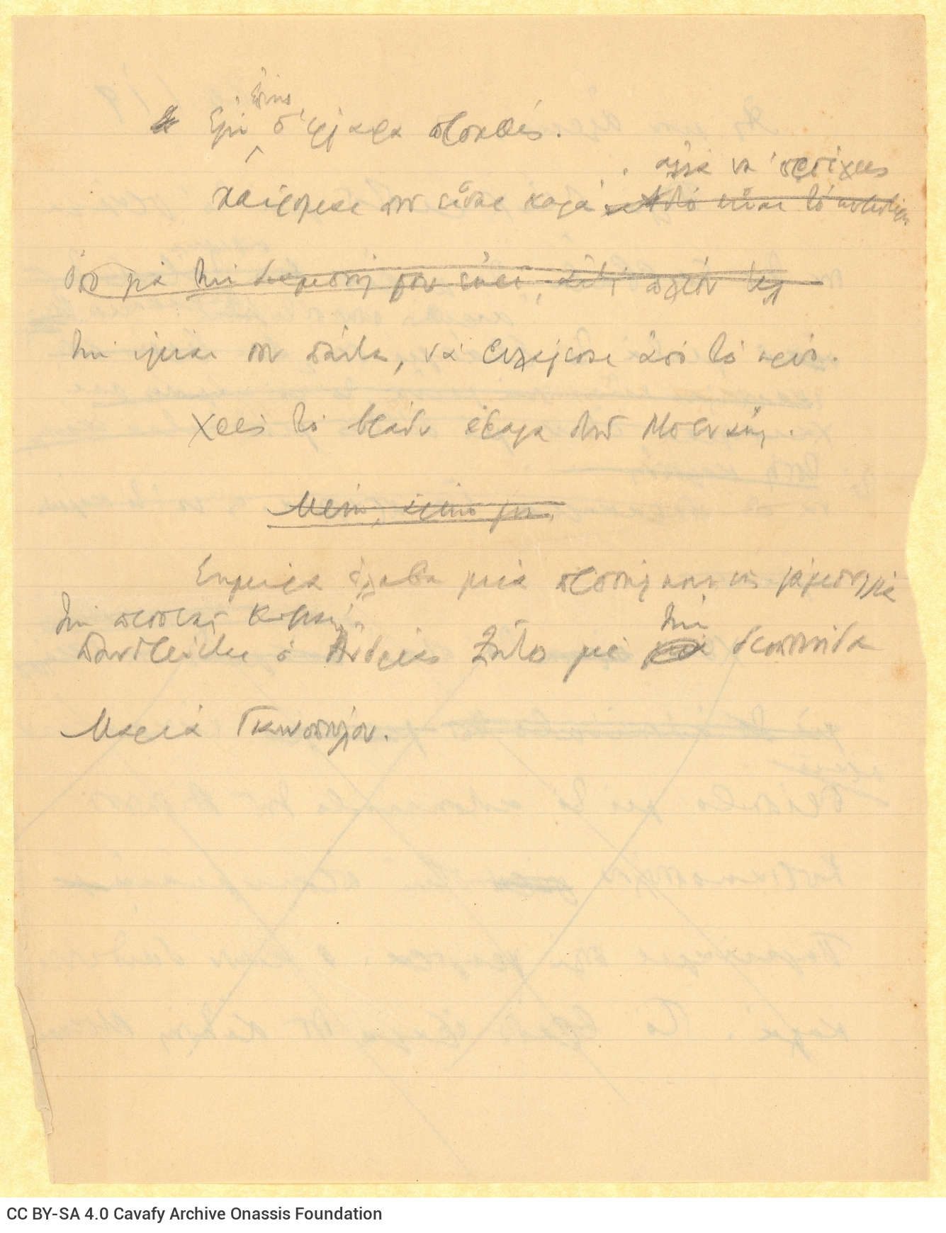 Σχέδιο επιστολής του Καβάφη προς τον Α. Σεγκόπουλο