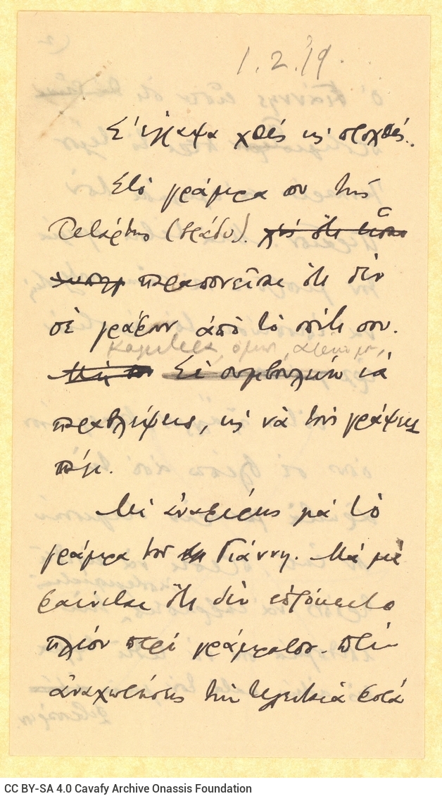 F17 - Drafts and copies of C. P. Cavafy's letters