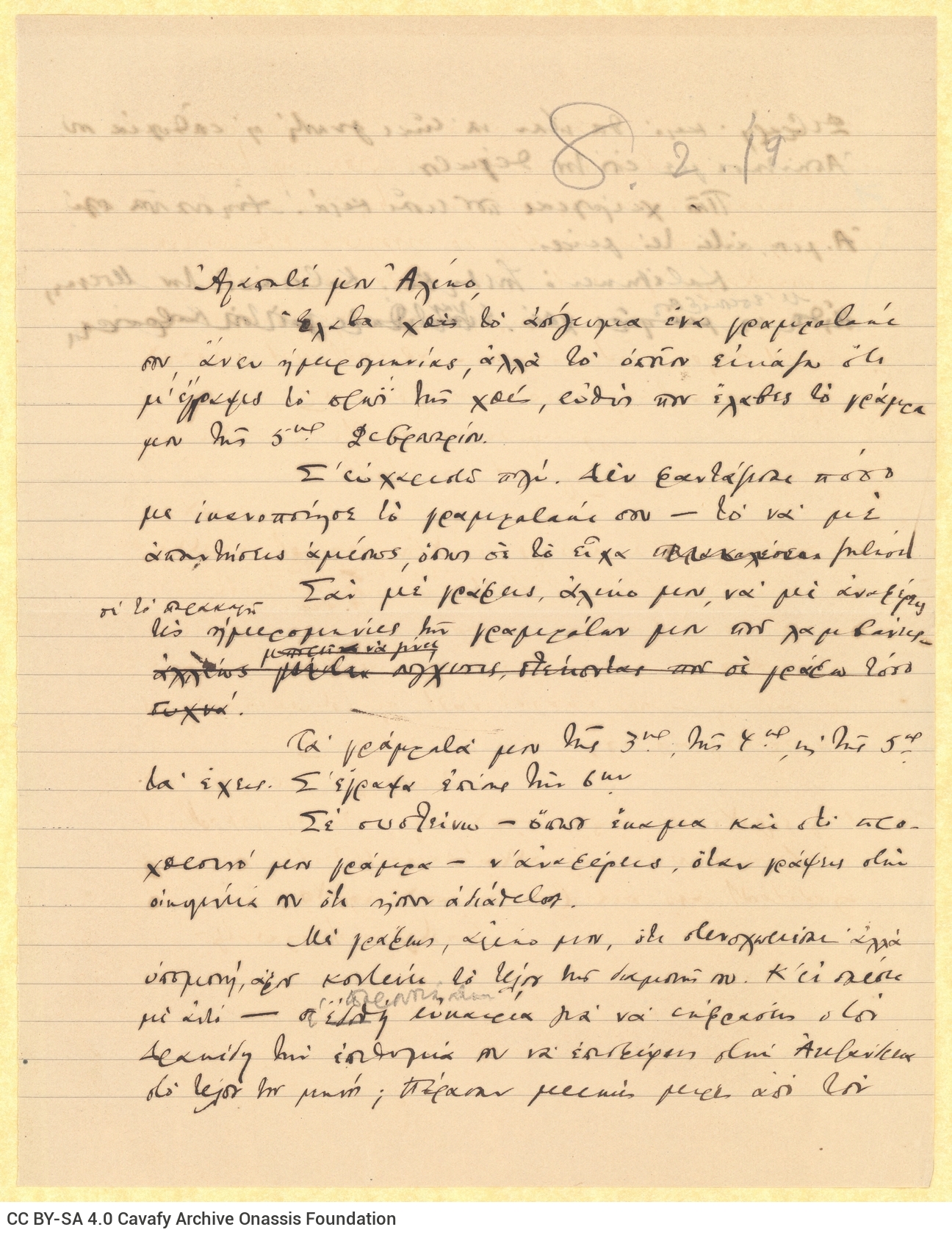 Σχέδια επιστολής του Καβάφη προς τον Α. Σεγκόπουλο