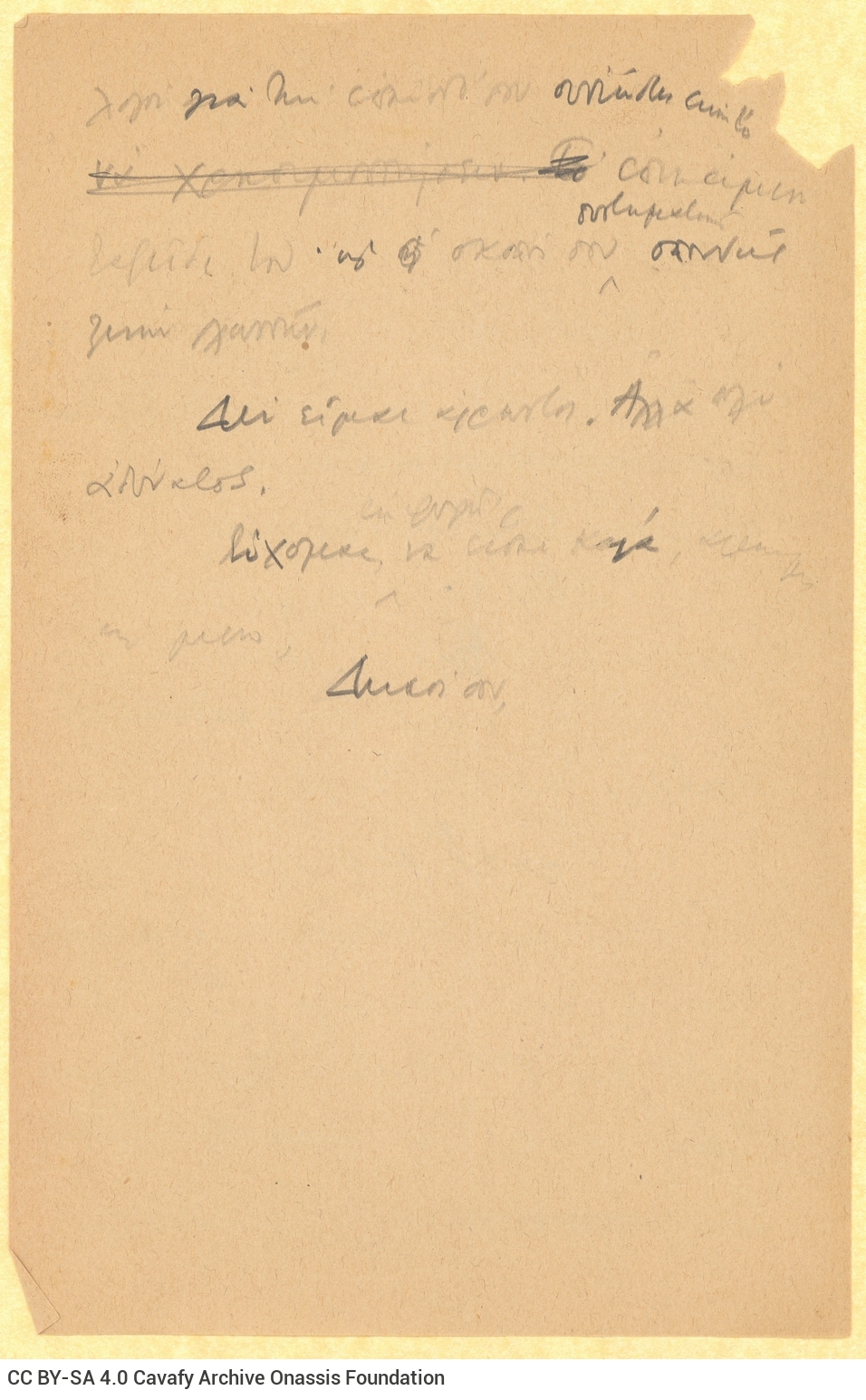 Σχέδιο επιστολής του Καβάφη προς τον Α. Σεγκόπουλο