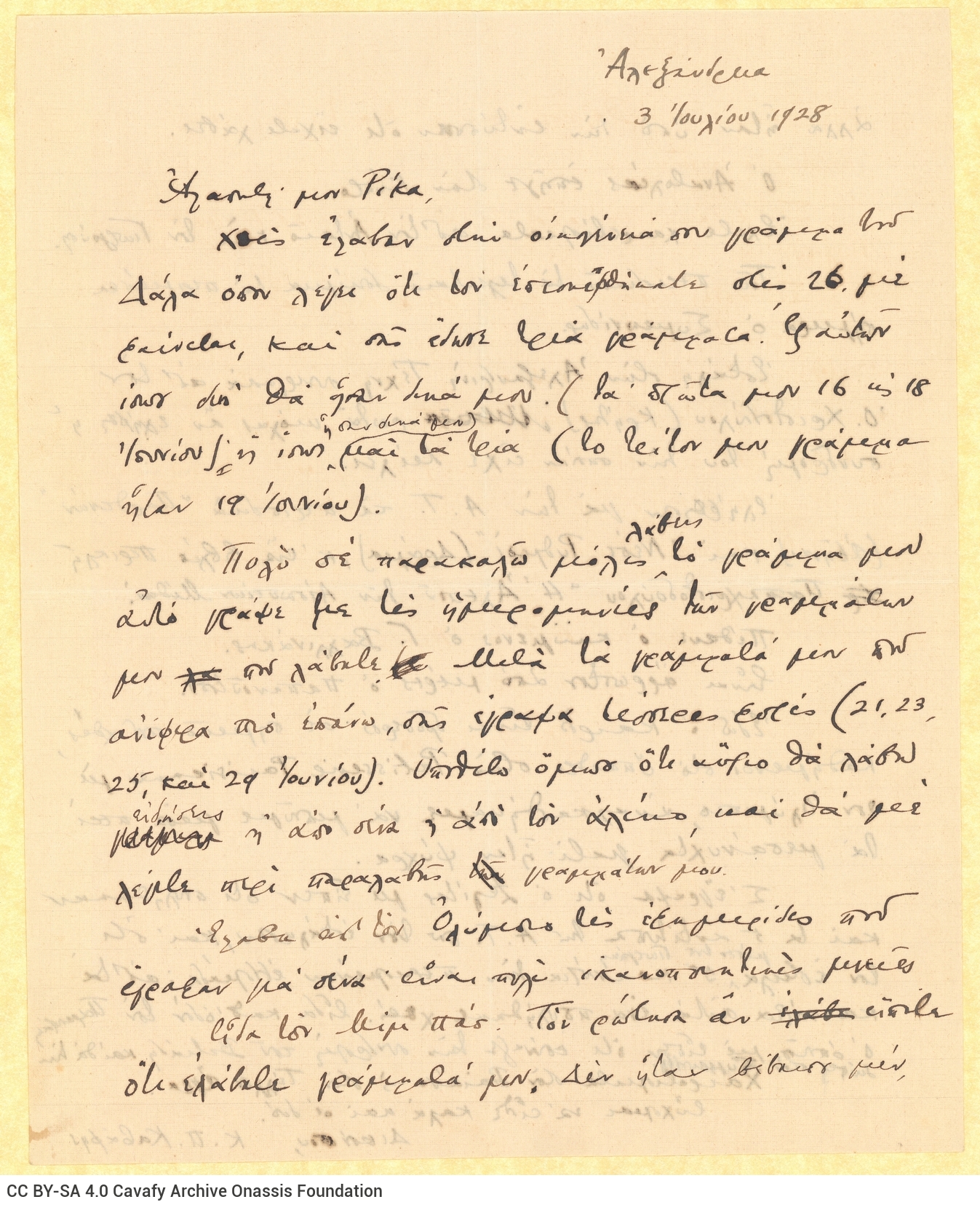 SF001 - Εισερχόμενη αλληλογραφία από τον Καβάφη