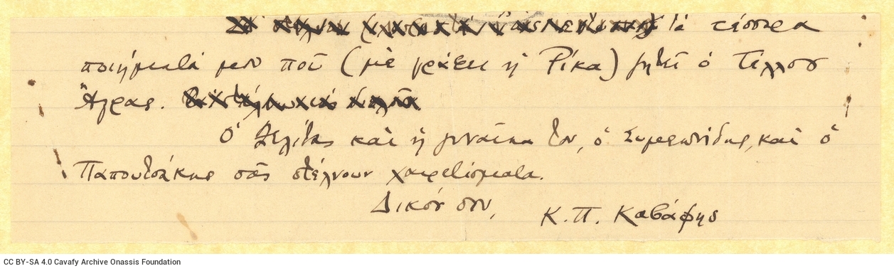 0088 (1588) - Draft letter by Cavafy to A. Singopoulo