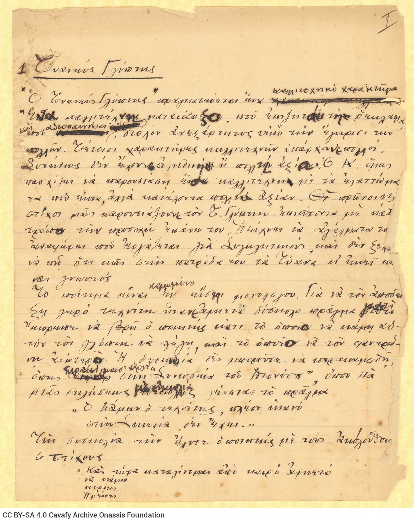 F01 - Κείμενα και άλλα τεκμήρια των Αλέκου και Ρίκας Σεγκοπούλου σχετικά με τον Καβάφη