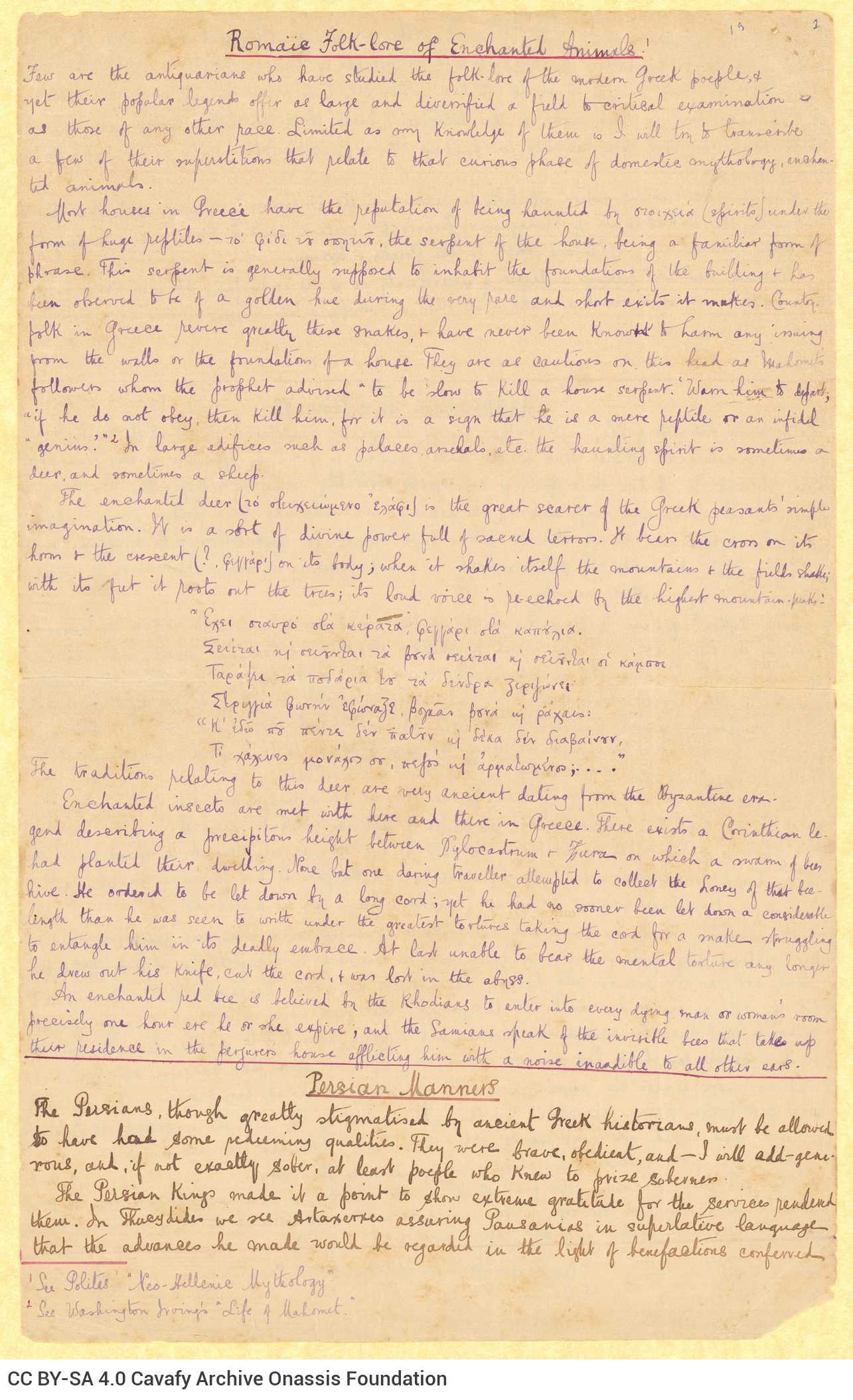 "Misplaced Tenderness", "Romaïc Folk-lore of Enchanted Animals", "Persian Manners", "Masks"