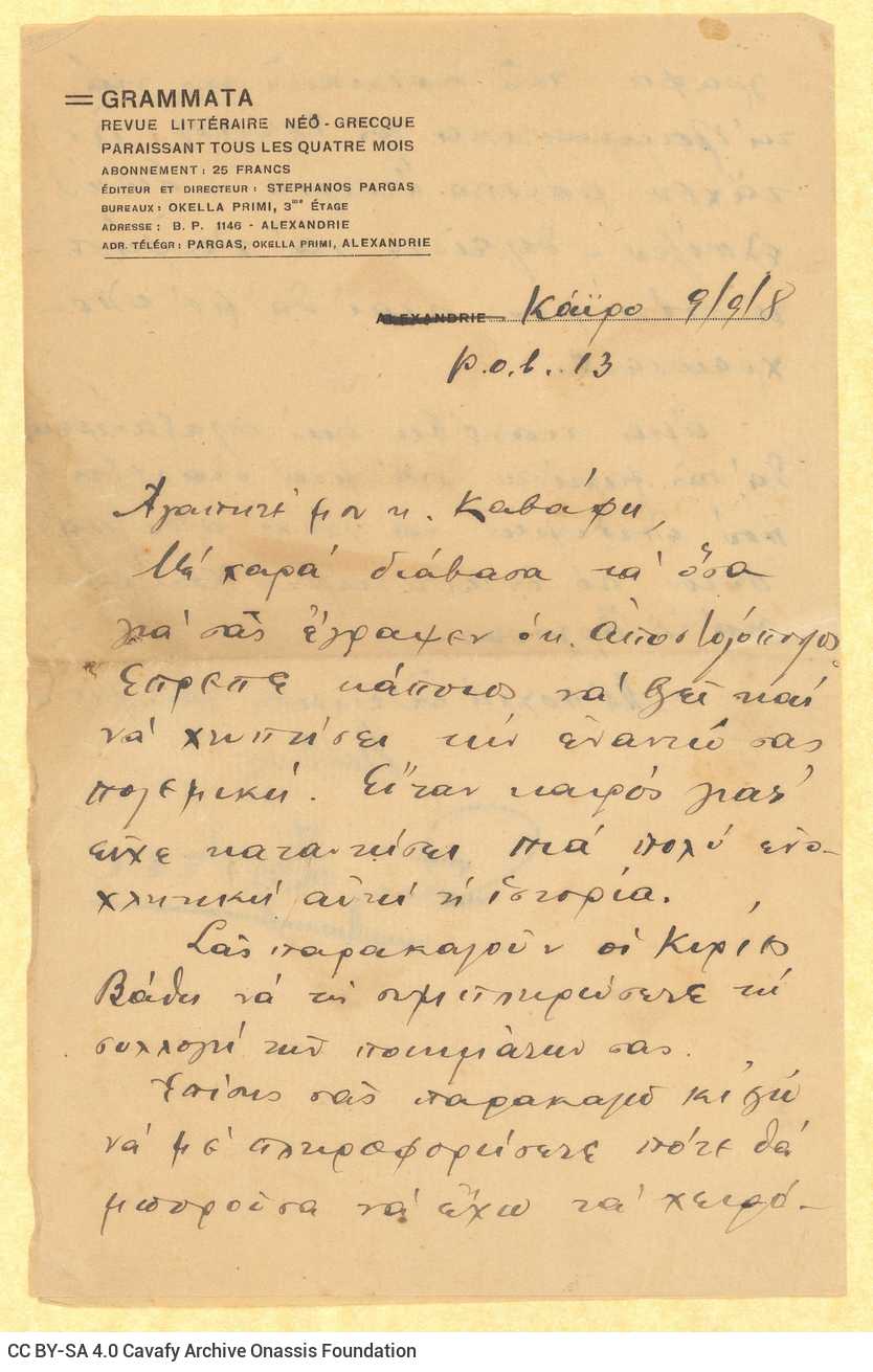 0041 (1657) - Letter by Nikos Zelitas to Cavafy