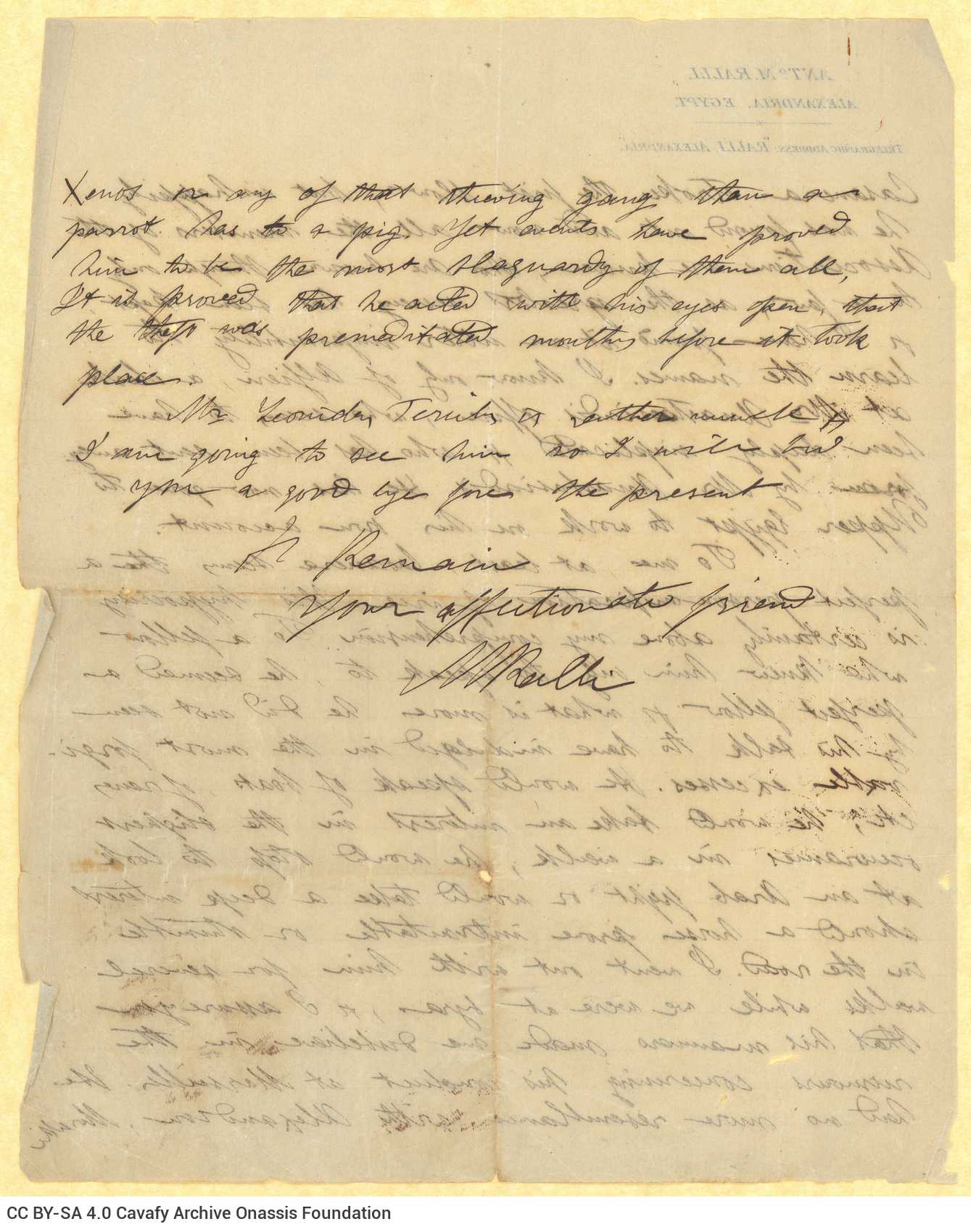 0027 (1675) - Επιστολή του Μικέ Ράλλη προς τον Καβάφη