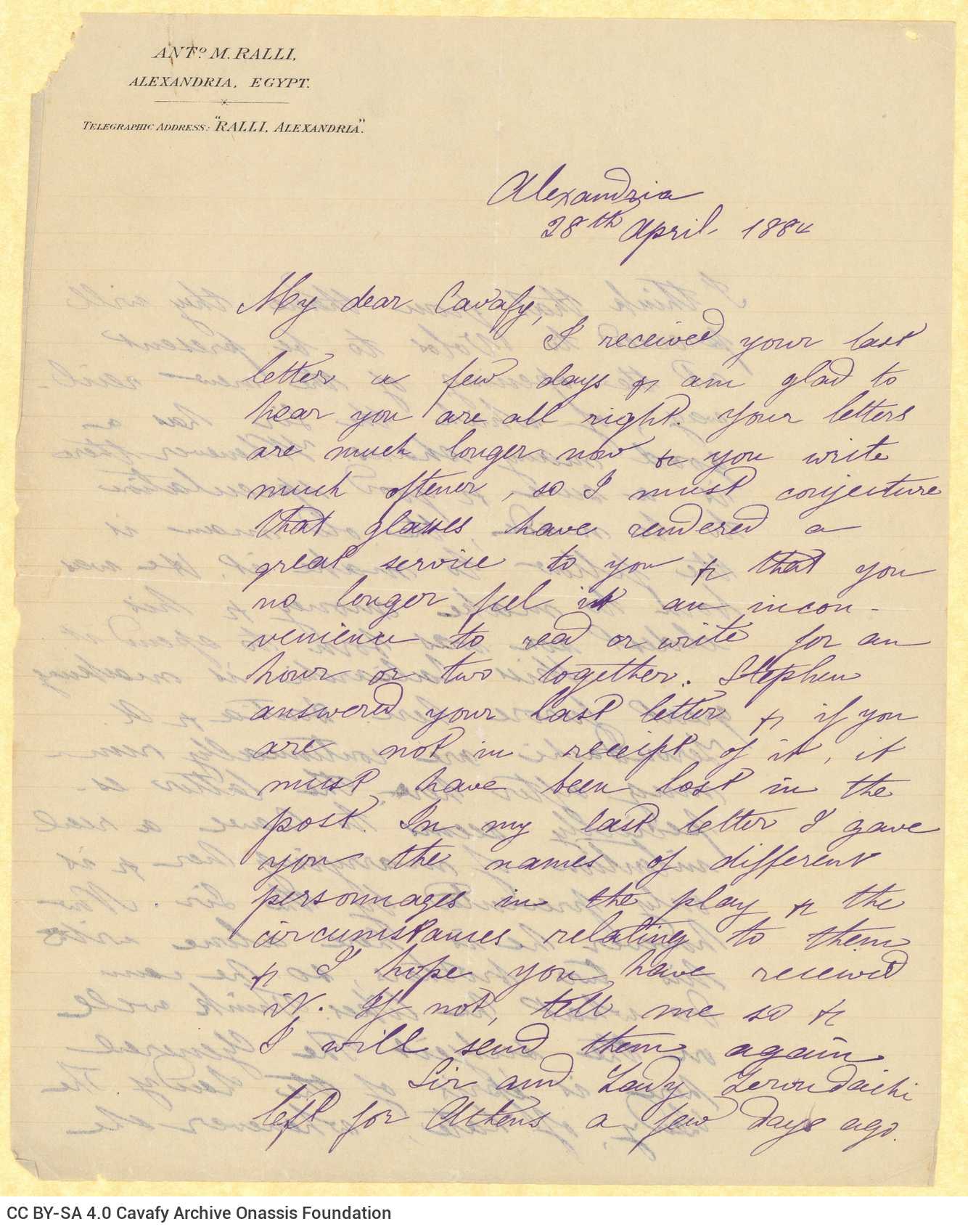 0034 (1682) - Letter by Mike Ralli to Cavafy