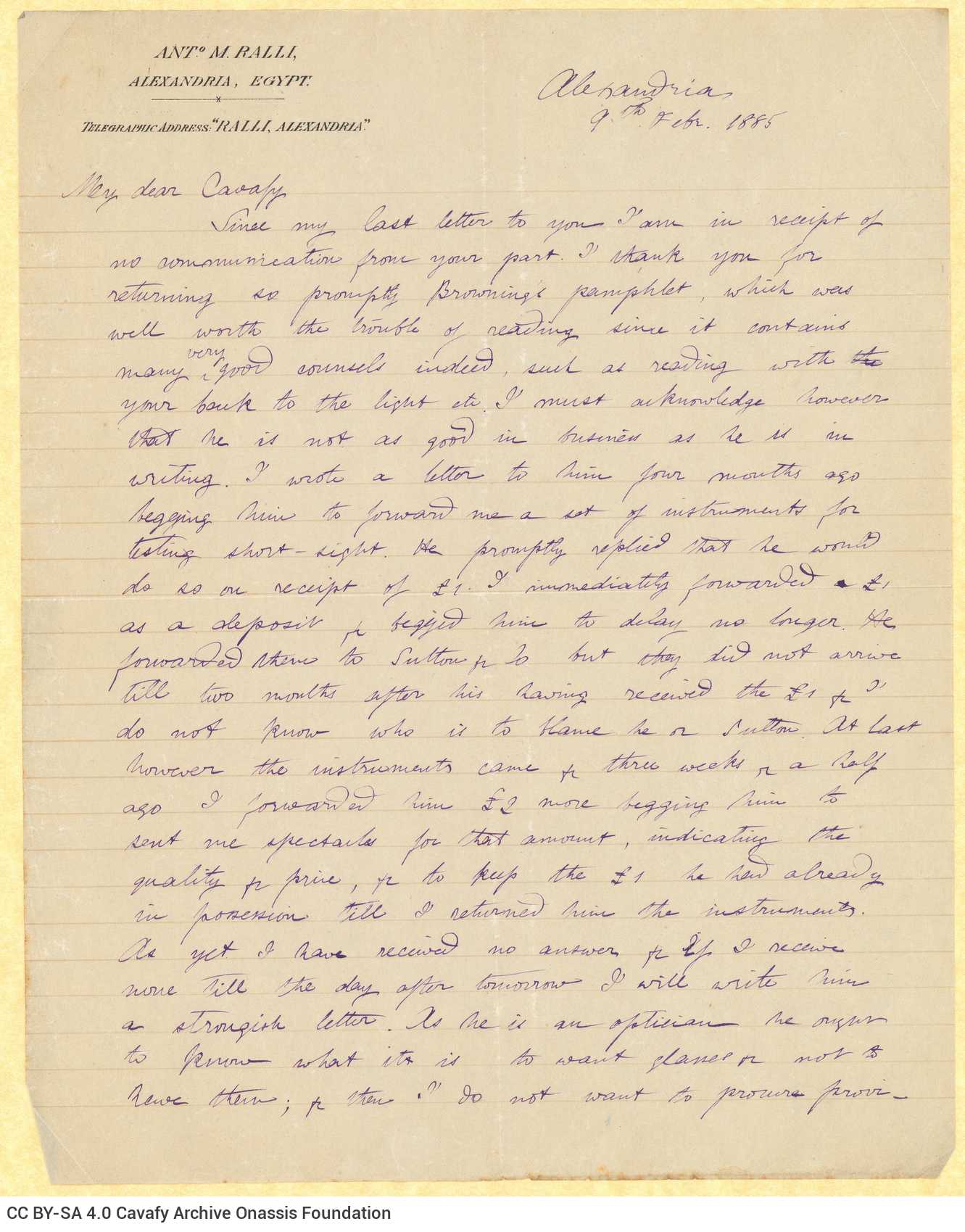 0065 (1701) - Επιστολή του Μικέ Ράλλη προς τον Καβάφη
