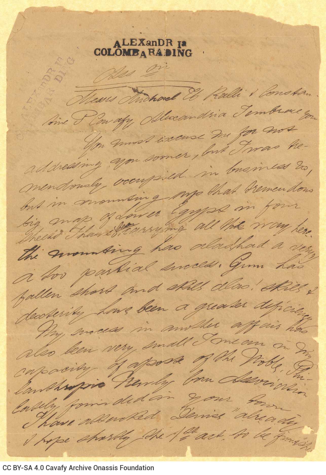 0087 (1761) - Letter by Stephen Schilizzi to Mike Ralli and Cavafy