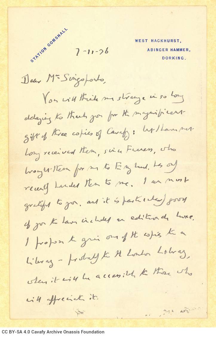 0024 (1805) - Επιστολή του E. M. Forster προς τον Α. Σεγκόπουλο