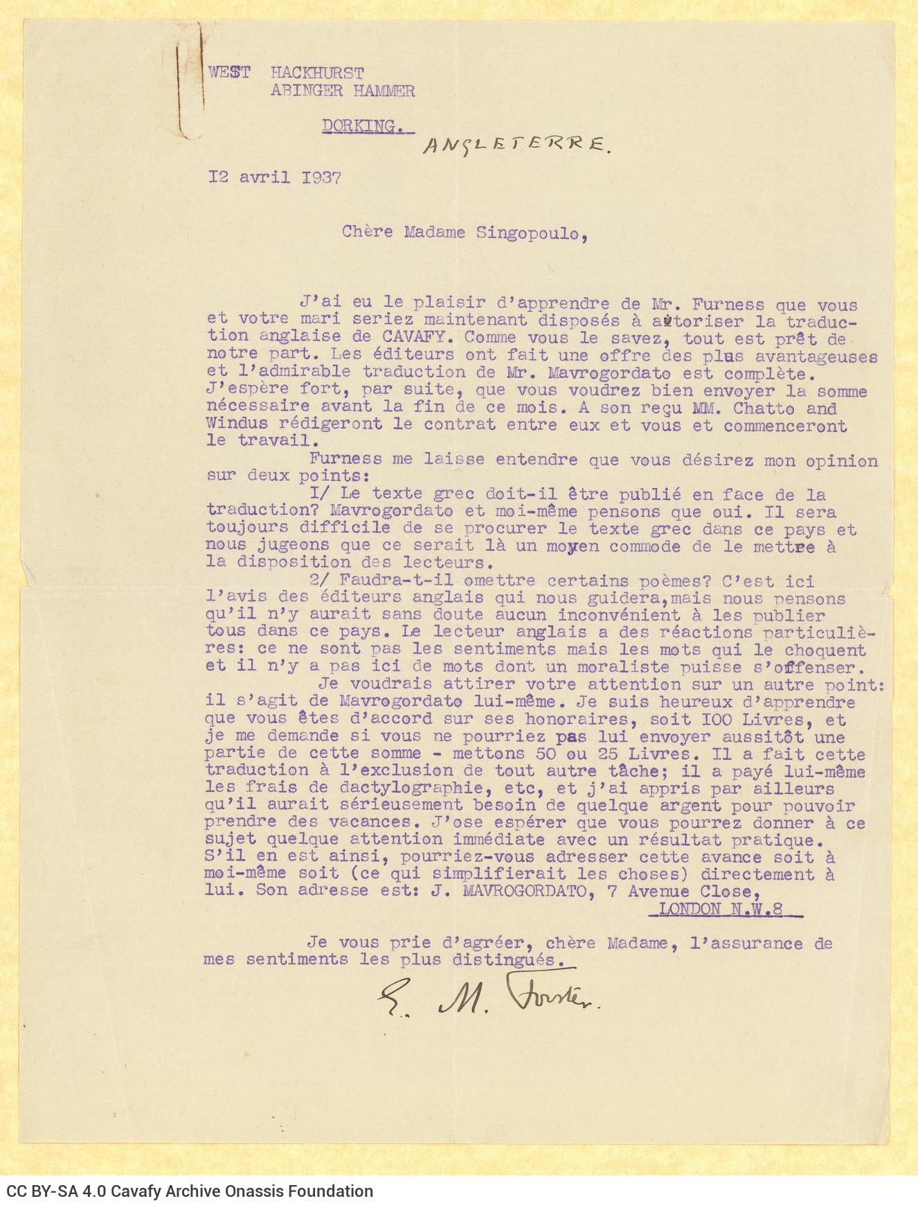 0027 (1808) - Επιστολή του E. M. Forster προς τη Ρ. Σεγκοπούλου
