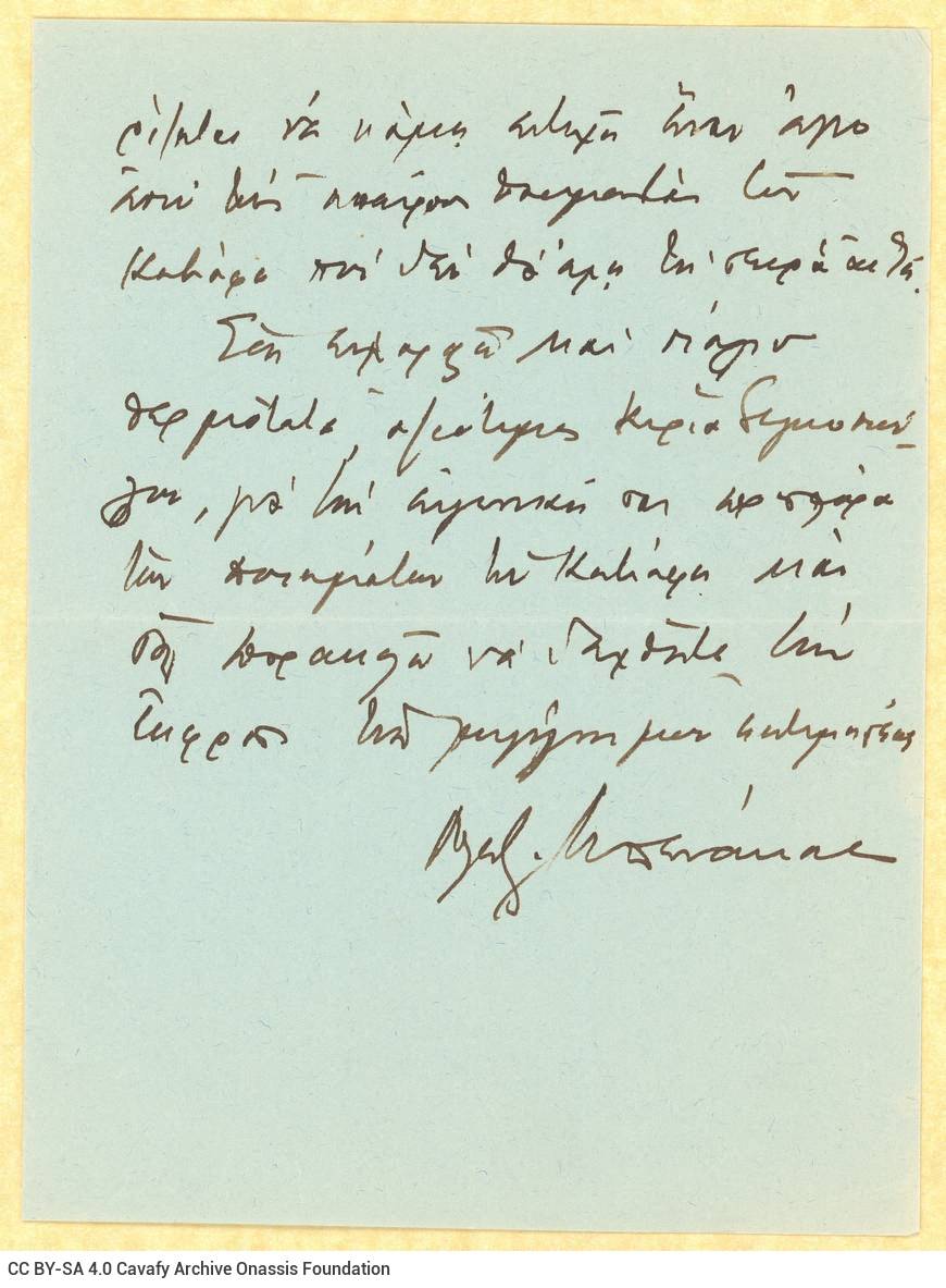 Letter by A. Benakis to R. Singopoulo