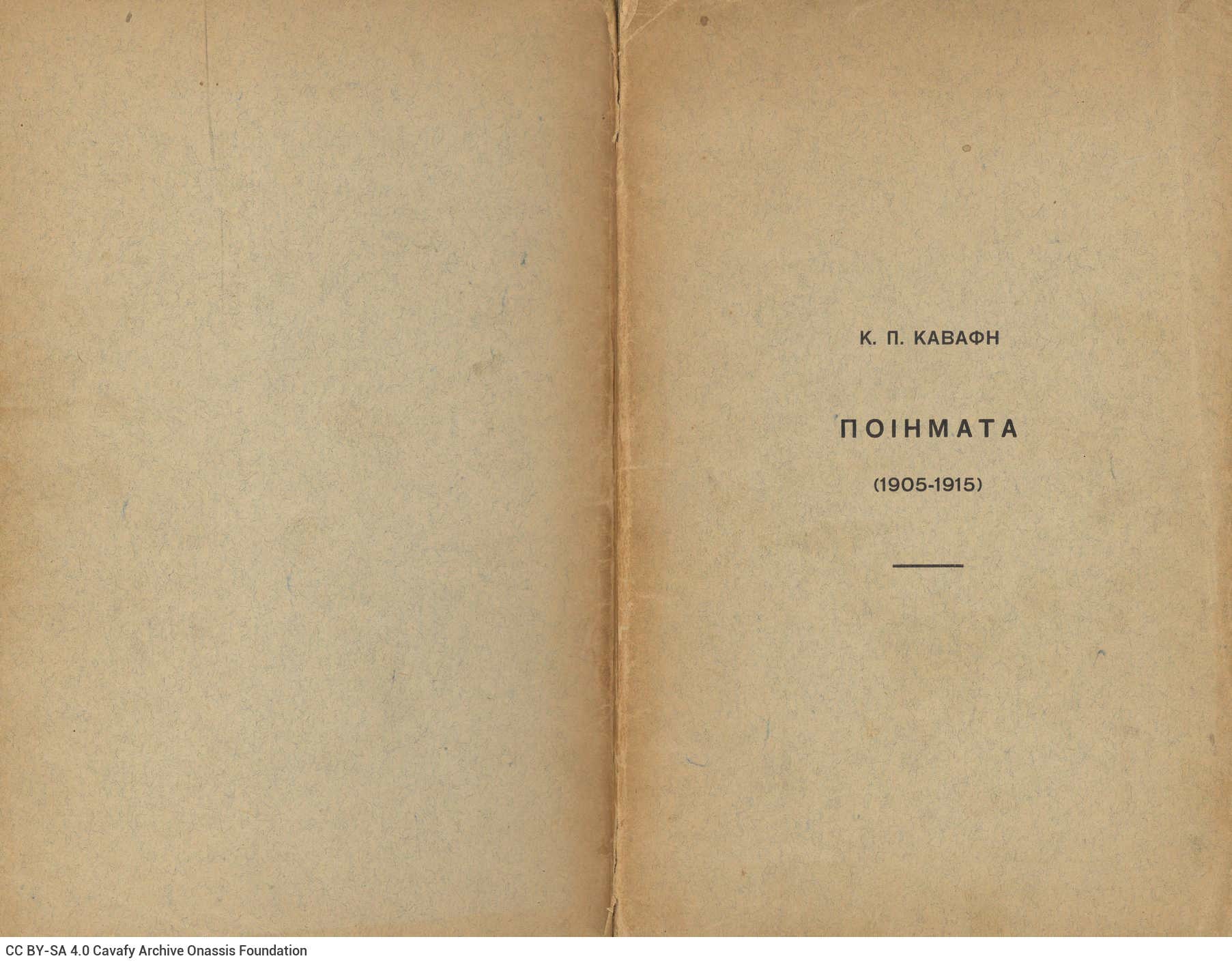 0003 (1921) - «Κ. Π. Καβάφη Ποιήματα (1905-1915)»