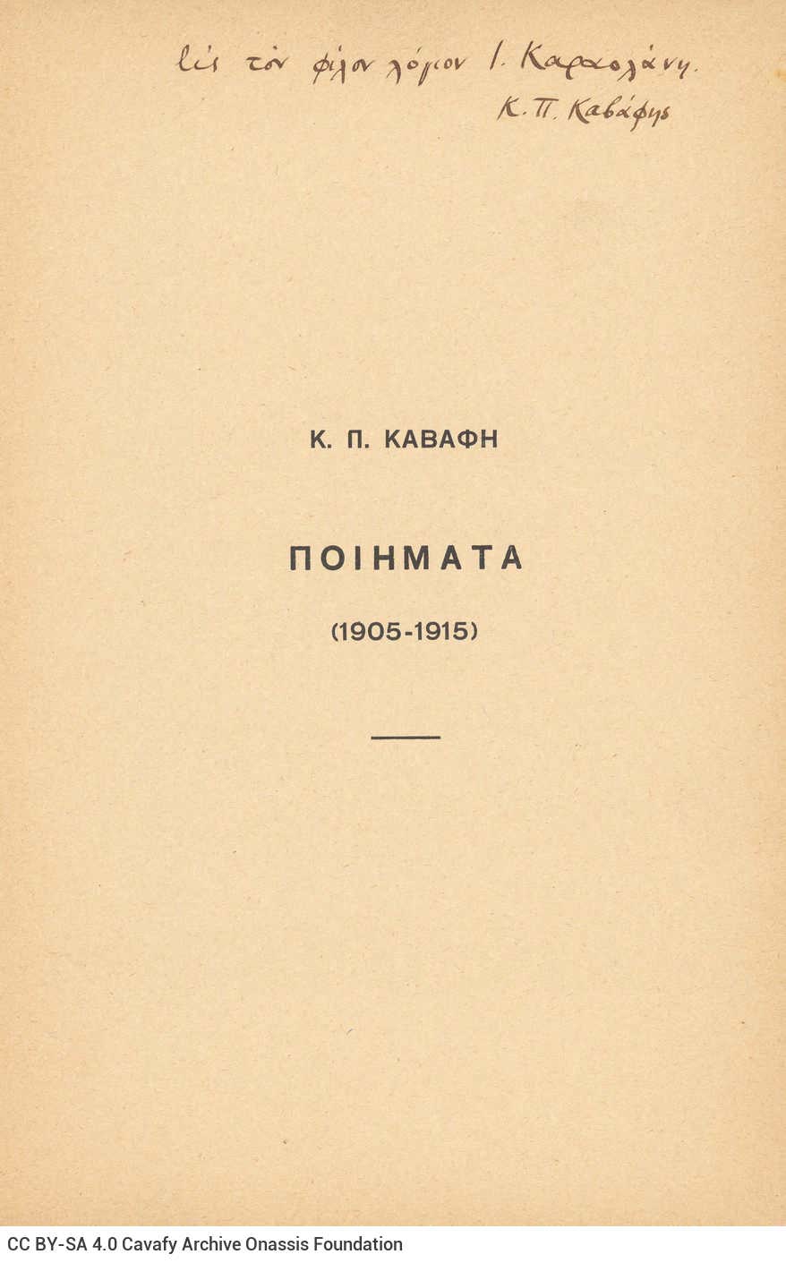 0004 (1922) - "C. P. Cavafy Poems (1905-1915)"