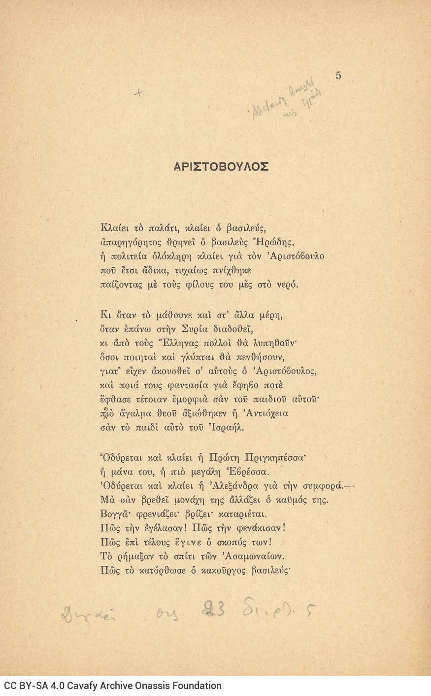 0005 (1923) - «Κ. Π. Καβάφη Ποιήματα (1916-1918)»