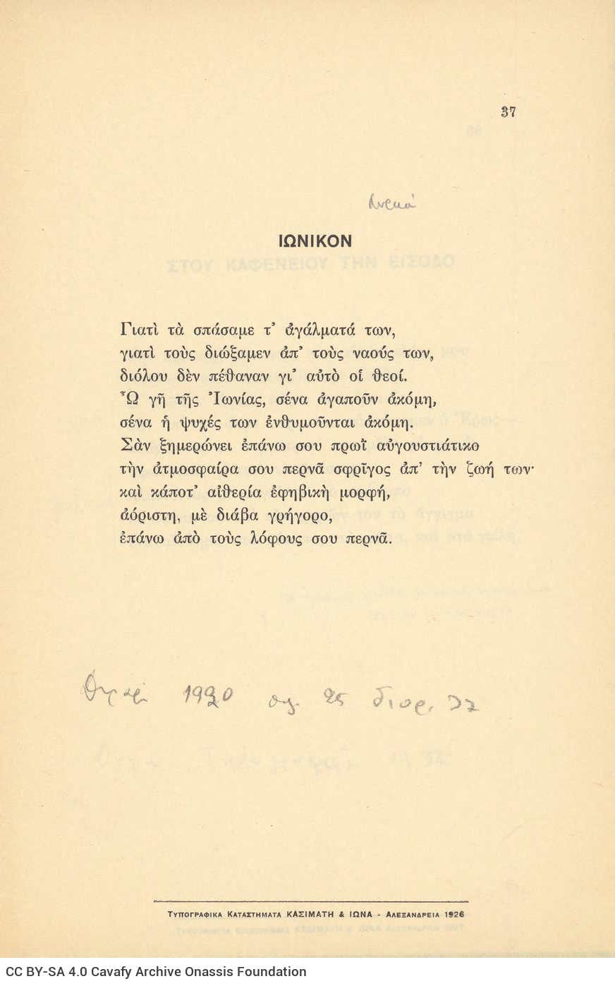 0002 (1924) - "C. P. Cavafy Poems (1907-1915)"