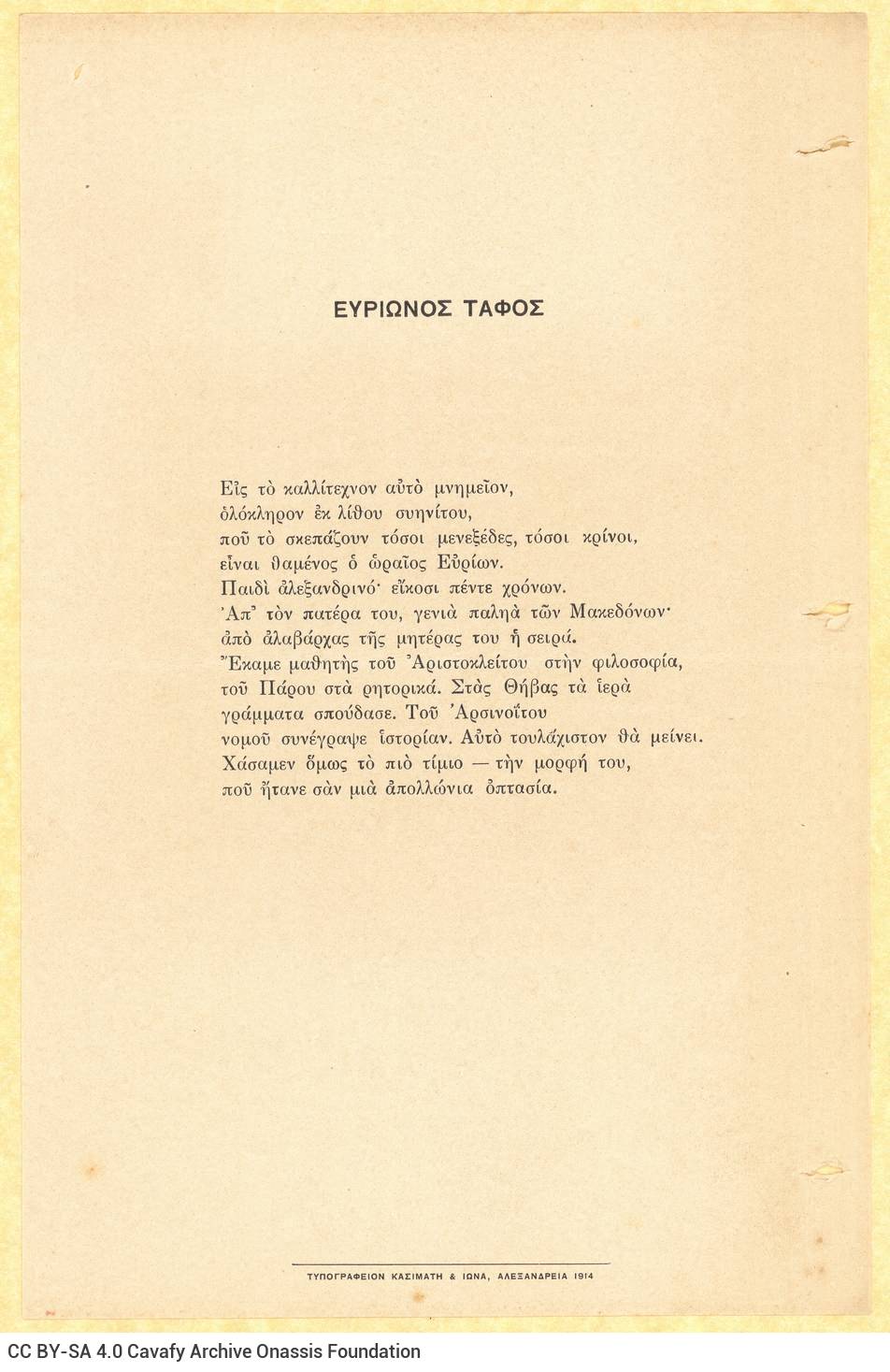 CA - CAVAFY, C. P. FONDS