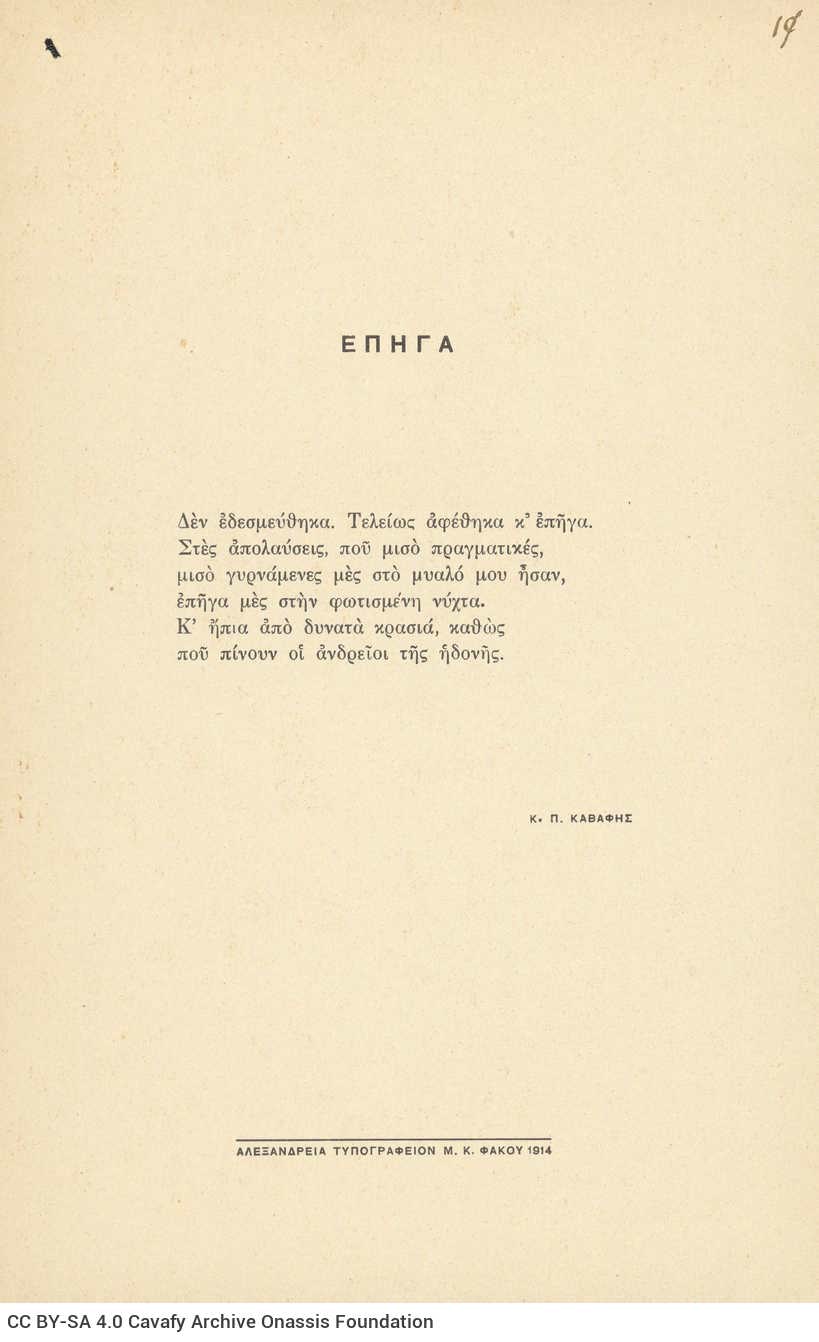 ΑΡΧΕΙΟ ΚΑΒΑΦΗ, Κ. Π.