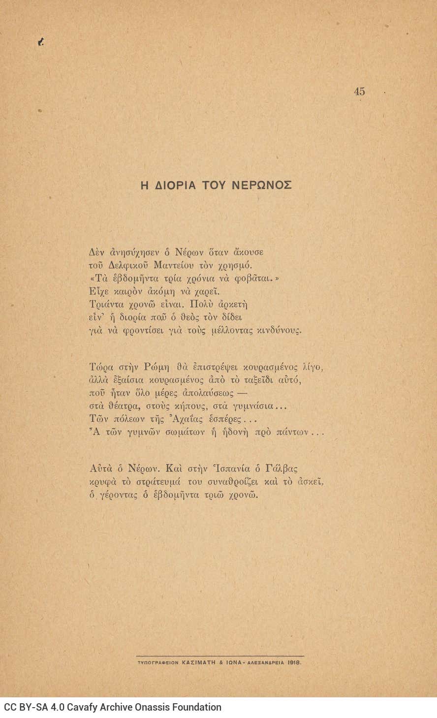 CA - CAVAFY, C. P. FONDS